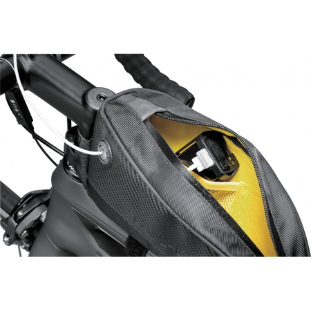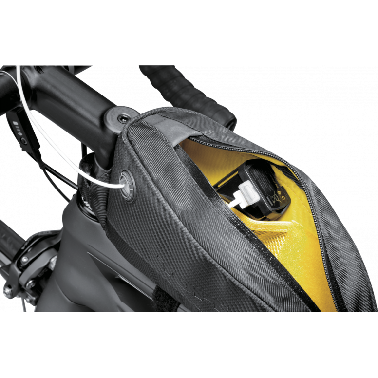 Large capacity top tube bag with easy-to-use velcro mounting system.