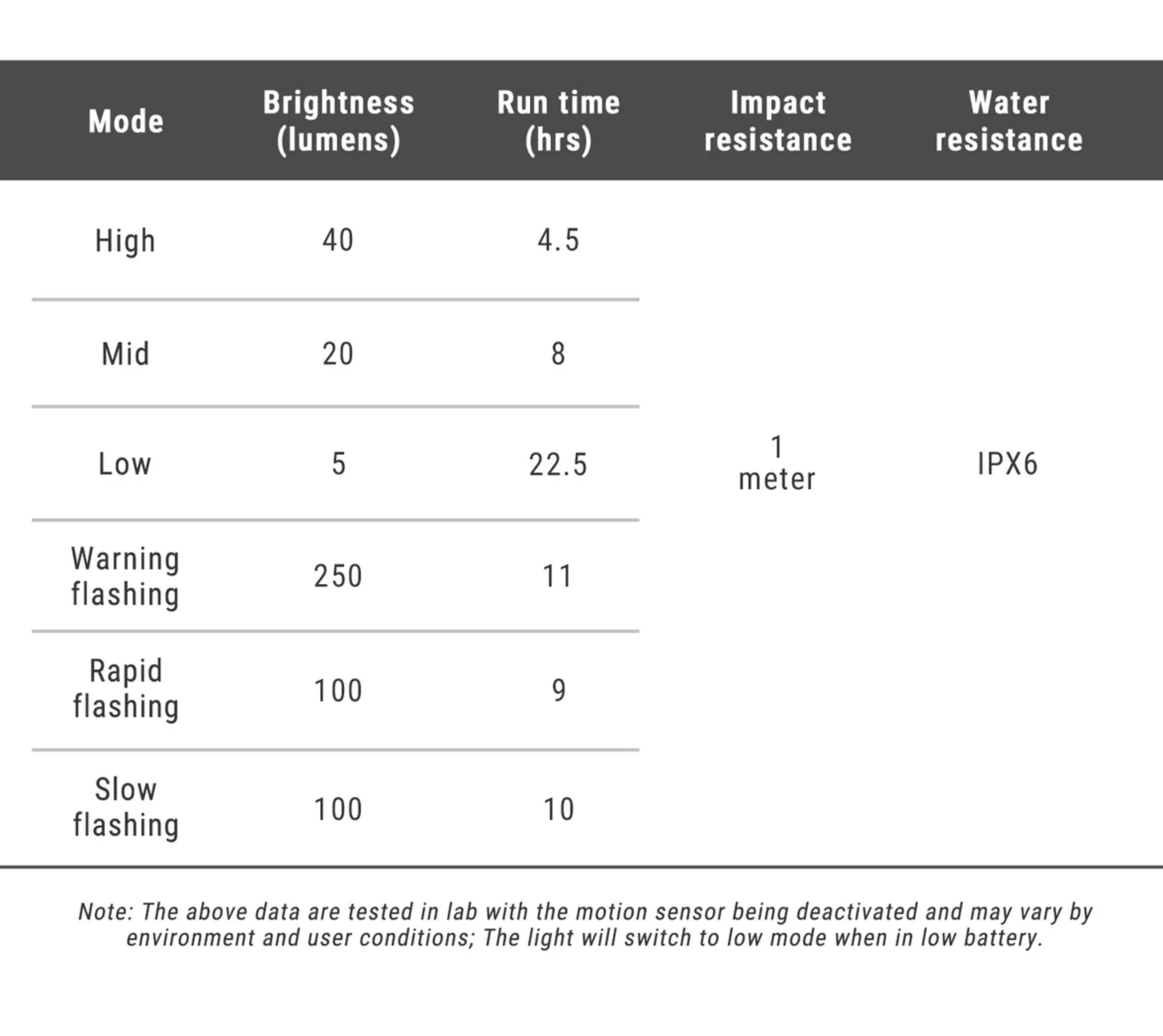 This light offers 6 different lighting modes, providing flexibility for various riding conditions.